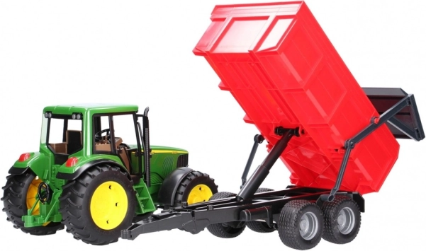Komplet traktor JOHN DEERE s funkcionalnim prekucnim priklopnikom otrokom prinaša realistično izkušnjo kmečkih opravil. Traktor je podrobno izdelan, ima odpirajoč se pokrov, krmiljeno sprednjo premo preko podaljšanega volana v kabini in izrazite profilirane pnevmatike za verodostojen videz in sledi.