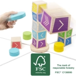 Uživajte v dinamični zabavi z družino in prijatelji. Ta lesena spretnostna igra v slogu Kubb navduši z preprostimi pravili in napetim potekom – naloga je z barvnimi diski zrušiti le vrhnjo kocko z zloženega stolpa. Zaradi kakovostne izdelave iz 100 % FSC lesa je igra trpežna, varna in prijazna do narave.