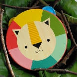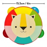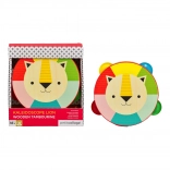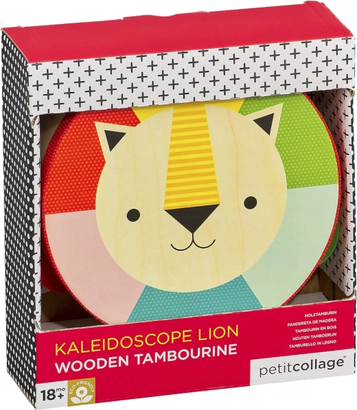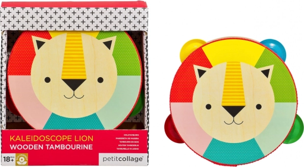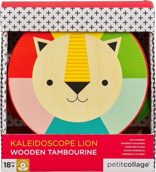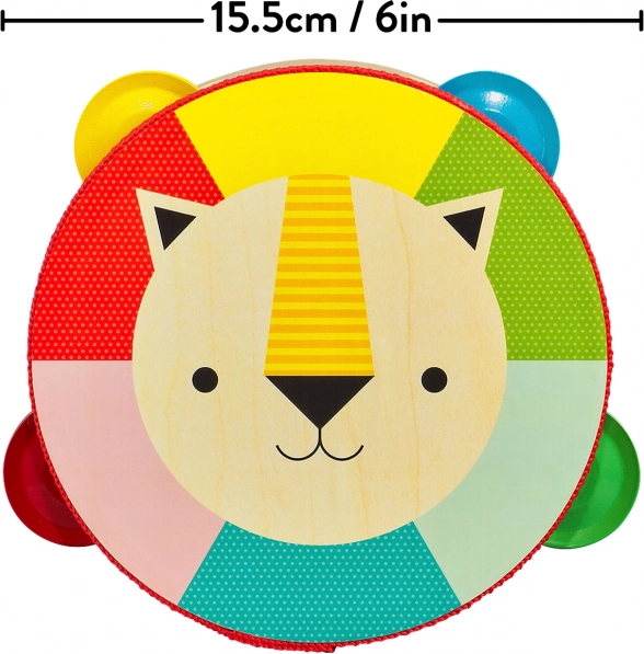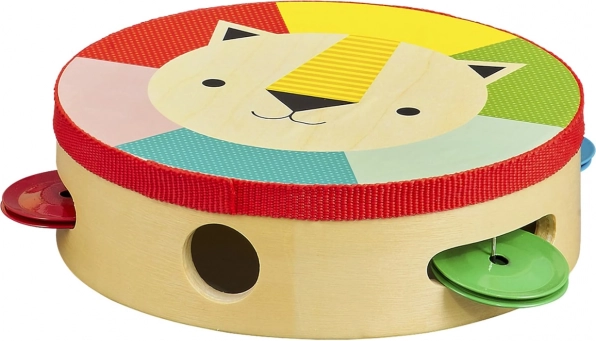 Ta kakovosten leseni tamburin iz topolove vezane plošče bo razveselil začetnike glasbenike in njihove starše. Lahko in udobno držalo, varne rastlinske barve ter lak na vodni osnovi zagotavljajo brezskrbno igro. Vesel levji motiv in izrazite barve spodbujajo občutek za ritem, barve in motorične spretnosti.