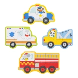 - 4 motivi reševalnih vozil – reševalno vozilo, policijski avto, gasilski tovornjak in vlečno vozilo