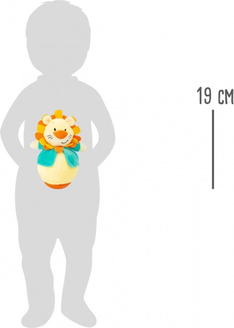 Ta mehak in barvit lev bo očaral otroke in starše. Zahvaljujoč pametni izbočeni osnovi se po rahlem dotiku prisrčno ziba levo in desno ter se spet postavi pokonci, kar otroke motivira k nadaljnjemu raziskovanju in podpira njihovo grobo in fino motoriko. Vgrajeni zvonček ustvarja prijetne zvočne dražljaje in podpira razvoj sluha.