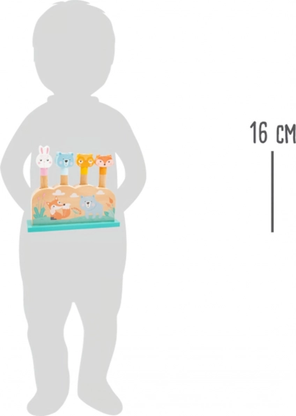 Ta lesena izstreljevalna igra znamke small foot prinaša preprosto, a hkrati fascinantno zabavo za najmlajše. Otroci vstavljajo lesene živalice v odprtine z vzmetmi in opazujejo, kako ob pritisku veselo poskočijo. Igra podpira potrpežljivost, spretnost in uči razumevanja vzroka in posledice.