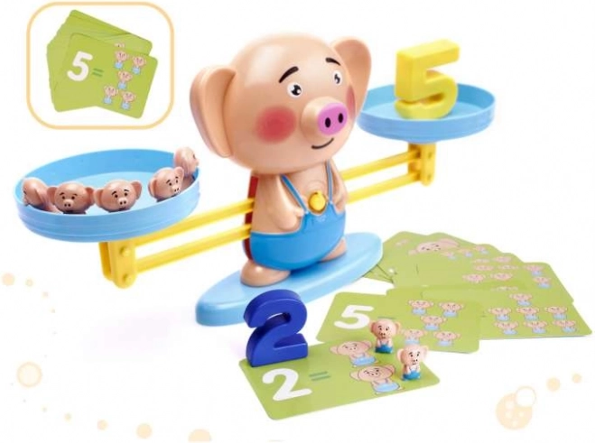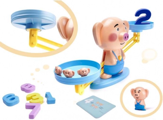 Ta izobraževalna igrača je zasnovana tako, da otroci na igriv način razumejo, kako deluje ravnotežje in osnovne matematične operacije. Vsaka številka ima enako težo kot ustrezno število pujskov – na primer številka 4 uravnoteži štiri majhne pujske. Tako otroci intuitivno vadijo seštevanje in odštevanje ter hkrati utrjujejo predstavo o količini.