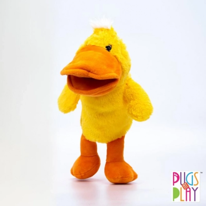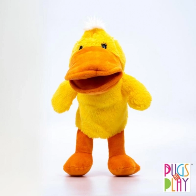 Plišasti ročni lutkovni Raček Pugs at Play z odprtino za roko, podpira fino motoriko in ustvarjalnost.
