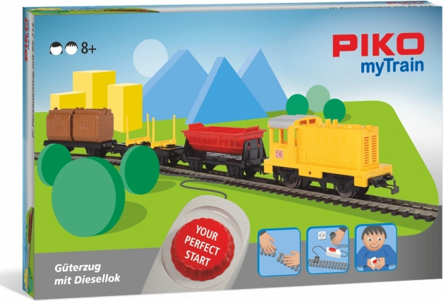 Ta začetni komplet PIKO myTrain prinaša vse, kar potrebujete za hiter začetek: dizelsko lokomotivo DB, tri tovorne vagone, osnovni oval R2 in analogni upravljalnik z napajalnikom. Zahvaljujoč merilu H0 (1:87) je set v celoti združljiv z drugimi komponentami in tiri H0 različnih proizvajalcev.