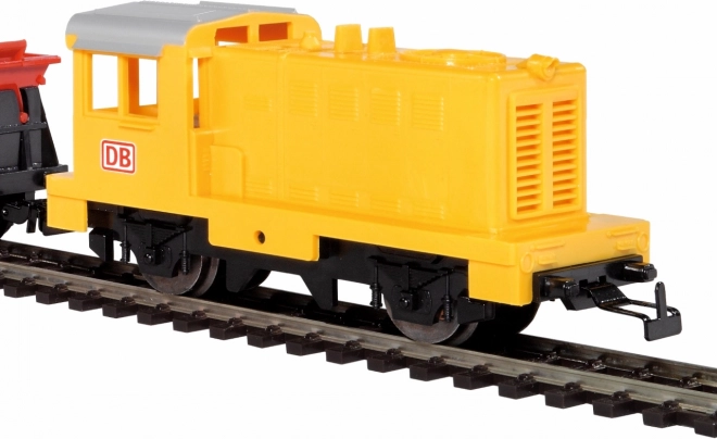 Rumena dizelska lokomotiva s preprostim analognim krmiljenjem je robustna in zanesljiva, primerna za vsakodnevno igro.