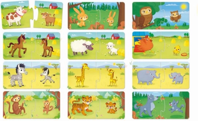 Zabavna izobraževalna igra za najmlajše: povežite živalske mamice z njihovimi mladiči in razvijajte otrokovo razmišljanje. Vsebuje 24 koščkov, izdelano iz varnih materialov, primerno za otroke od 1. leta. Odlična izbira za spodbujanje logike, fine motorike in vizualnega zaznavanja.