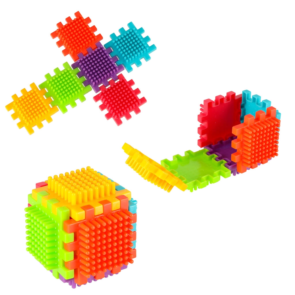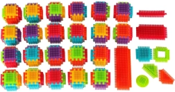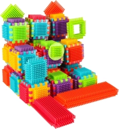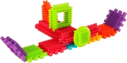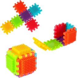 Bloki so izdelani iz kakovostne plastike, so zelo lahki, prilagodljivi in hkrati izjemno trpežni. Pomagajo pri učenju novih oblik in barv ter razvijajo ročne spretnosti. Bloki so zasnovani tako, da spodbujajo razvijajoče se otrokove čute: vid z izrazitimi barvami in tip z originalno obliko ter načinom spajanja. Bloki, ki vam ponujajo čudovite možnosti za ustvarjalno igro! Poleg tradicionalnega kombiniranja kot pri običajnih kockah lahko te bloke povezujete tudi po celotni površini stranice, kar vam daje dodatno možnost ustvarjanja. Uporabite jih lahko za gradnjo stavb, robotov in drugih konstrukcij!