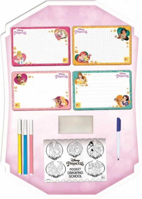 Odkrijte čar ustvarjanja s prenosnim kompletom za male umetnike. Potujoča risarska šola – Disney Princeske ponuja pobarvanke z navodili, 4 izbrisljive plošče in barvne flomastre za neskončno zabavo doma in na poti. Idealno za otroke od 3 let, ki imajo radi risanje in svet Disney princesk.