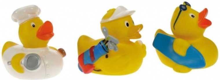 Popestrite kopanje z zabavnimi račkami, ki predstavljajo različne poklice. Izdelane so iz kakovostnega, zdravstveno neoporečnega materiala in so brez ftalatov. Idealna velikost 8 cm se lepo prilega otroški roki, odlične za igro v kadi in kot dekoracija.