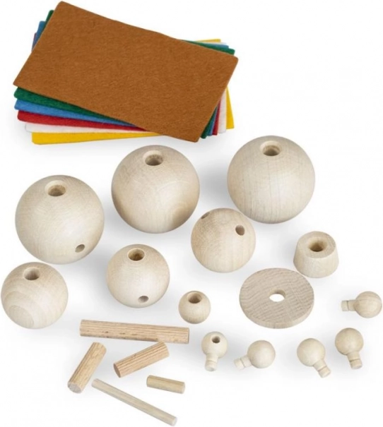 Sestavite lastne živalice in likce iz gladkih lesenih delov ter jih dopolnite z barvnim filcem. Odlično za skupno družinsko ustvarjanje.