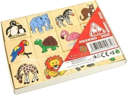 Vsebuje 24 lesenih kart v velikosti 4x4x0,5 cm