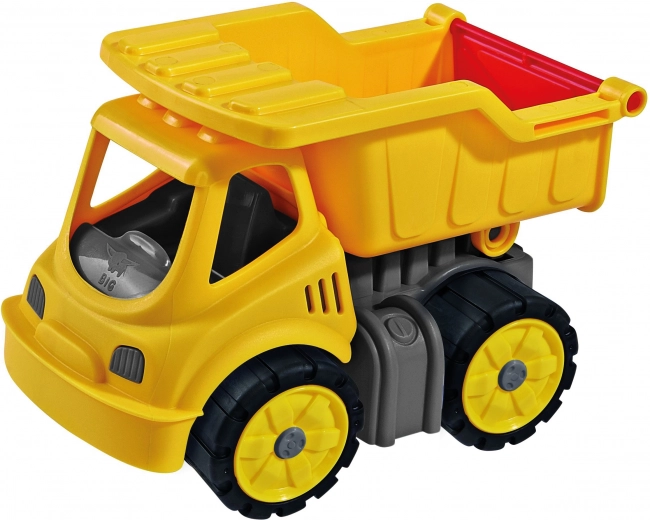 Igrača posnema velike gradbene stroje, njen izrazit rumen videz pa pritegne pozornost vsakega malega graditelja.