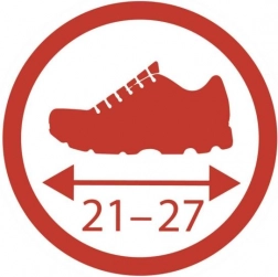 Paščki in prožna oblika omogočata enostavno namestitev na različne otroške čevlje ter zanesljiv oprijem tudi pri živahni vožnji.