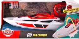 RC Sea Cruiser znamke DICKIE TOYS je odlična izbira za prve plovbe in za male navdušence nad vodnimi modeli. Eleganten dizajn, živahna vožnja in varen način delovanja naredijo ta motorni čoln za popolno igračo za bazen, ribnik ali jezerce. Zaradi samodejnega zagona motorjev šele ob stiku z vodo je uporaba varna in intuitivna.
