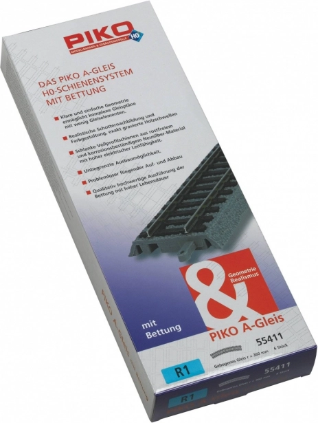 Ukrivljena tirnica Piko z realistično reprodukcijo lesenih pragov na gramoznem nasipu ponuja verne barve in natančne detajle, idealna za modelne železniške postavitve.