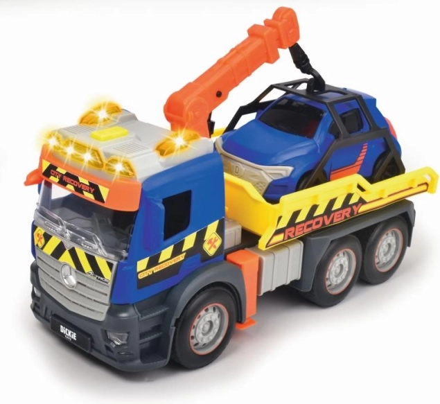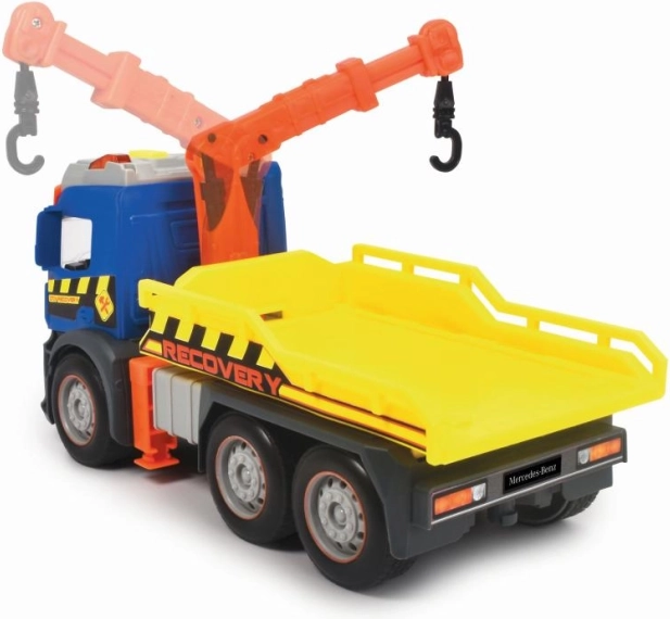 To mestno vlečno vozilo MERCEDES otrokom prinaša pristno izkušnjo odvoza vozil. Zahvaljujoč frikcijskemu pogonu se vozilo po potisku zapelje, prozorna okna prikazujejo dodelano notranjost, svetlobni in zvočni učinki pa še okrepijo realistično igro.
