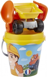 Ta igriv komplet za pesek z gradbenim motivom je odličen za razvoj domišljije, fine motorike in timske igre. Otroci bodo uživali v prevažanju peska s tovornim avtomobilčkom, sejanju skozi sito ter gradnji potičk in trdnjav.