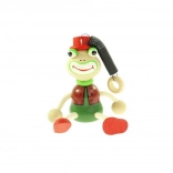 Ta lesena viseča igrača v obliki žabca prinaša otrokom veselje preprostega gibanja in zabavnega poskakovanja. Zahvaljujoč vzmeti se ob nežnem potegu elegantno ziblje in skače, s čimer spodbuja otroško radovednost in razvija fino motoriko.