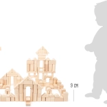 Ta komplet lesenih kock Small Foot vsebuje širok spekter različnih oblik gradbenih elementov, ki otrokom omogočajo ustvarjanje raznolikih struktur in razvijajo njihovo ustvarjalnost. Kocke so narejene iz neobdelanega gladkega lesa, kar zagotavlja njihovo varnost za otroke od 12 mesecev naprej.