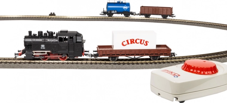 Popoln začetni komplet modelne železnice s parno lokomotivo in tremi tovornimi vagoni. Ponuja analogno upravljanje, tirnice s podložjem za enostavno montažo, kompakten oval in zanesljivo enosmerno napajanje (DC) – idealen vstop v svet merila H0 za začetnike in napredne.