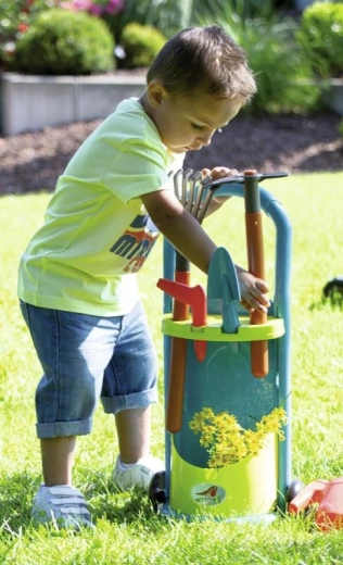 Set spodbuja kreativno igro, samostojnost in praktične veščine. Otroci lahko varno preizkusijo delo z vrtnim orodjem, se naučijo osnov nege rastlin ter uživajo v obilici zabave pri zalivanju in grabljenju.