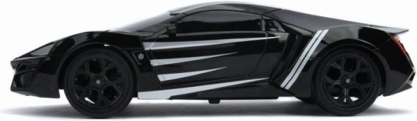 Uživajte v akcijski vožnji z RC avtom Lykan HyperSport v dizajnu Black Panther. Črna športna izvedba s srebrnimi detajli in logotipi MARVEL očara na prvi pogled, medtem ko stabilno upravljanje na frekvenci 2,4 GHz zagotavlja gladko manevriranje brez motenj.