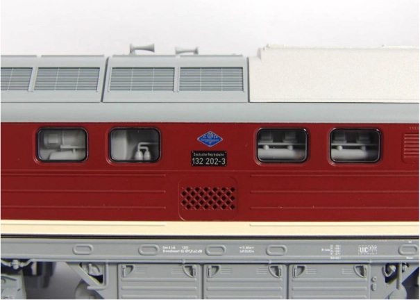 Veren in podroben model dizelsko-električne lokomotive BR 132 »Ludmilla« v barvah DR. Navdušuje predvsem z detajli razlik v primerjavi z drugimi izvedbami, kot so ograje na čelu, podrobnosti čelnih in stranskih oken ter izvedba strehe. Barvna shema in tisk, ki vključujeta vse dekorativne elemente, sta vrhunske kakovosti, skladna z linijo Expert. Model je opremljen z zmogljivim motorjem z vztrajnikoma, navor pa se prenaša preko diagonalno razporejenih obročkanih koles na notranjih oseh podvozja; poganjane so štiri osi. Skupaj z dolgim litim cinkovim okvirom so tako zagotovljene izjemne vozne lastnosti. Bela/rdeča LED-osvetlitev se menja glede na smer vožnje, osvetljena je tudi voznikova kabina. Model je mogoče razširiti z namenskim digitalnim dekoderjem z zvočnim modulom in zvočnikom. Na voljo so tudi vagoni ustreznega tipa in izvedbe. Glavne lastnosti: šest osipogon z dvema vztrajnikomadve obročkani gnani kolesisvetloba z menjavo barve glede na smer vožnjeosvetlitev notranjostivmesnik PluX22 po NEM 658vlečna gred po NEM 362 s kinematiko kratke spenjače Dokumentacija: Brošura za modele BR 132/BR 232 (DE)Splošne informacije o BR 130 (DE, EN, F, NL)Test modela v reviji Miniaturbahnen 2/2018 (DE)Navodila za uporabo in seznam nadomestnih delov modela št. 52760 (DE, EN, F, NL)