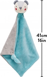 Izjemno mehka, plišasta odejica z glavico nasmejanega medvedka. Odličen dodatek za popoldanski počitek. Kontrastni vzorci in barve medvedka spodbujajo razvoj senzoričnih sposobnosti pri otrocih, medtem ko lahko vozliček na kotu odejice držijo ali grizejo.