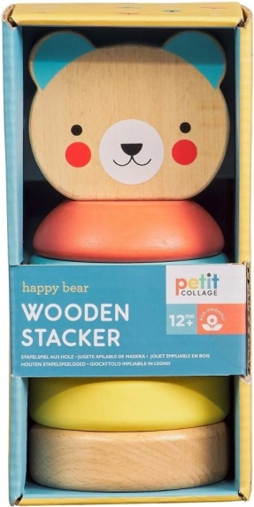 Leseni stolp Medvedek znamke Petit Collage je barvita in varna sestavljanka za otroke od 12 mesecev naprej. Zahvaljujoč prepoznavnim vzorcem in barvam znamke otroci intuitivno nizajo in zlagajo posamezne dele ter tako urijo fino motoriko in koordinacijo oko–roka.