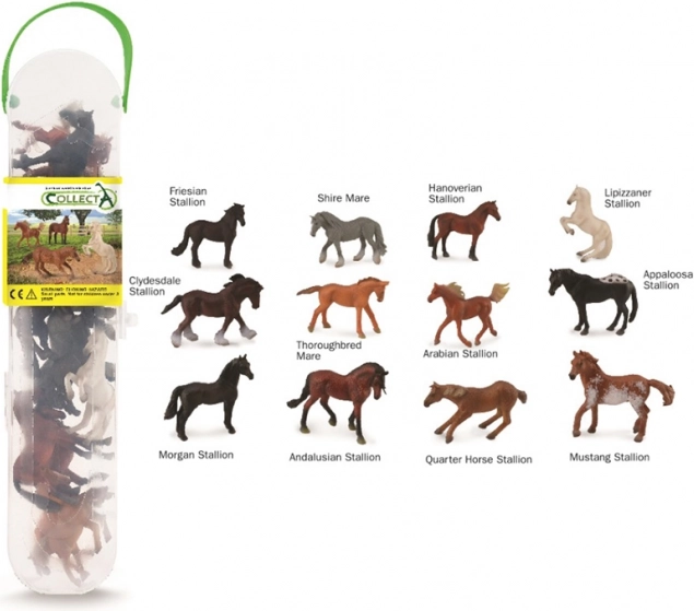 Set 12 žrebet CollectA prinaša v otroški svet raznolikost pasem in verodostojne podrobnosti, ki podpirajo igro, učenje in zbirateljsko strast. Vsaka figurica je zasnovana z ozirom na realistične proporcije, teksturo dlake in barve.