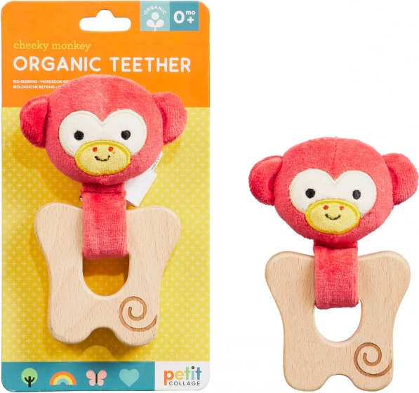 Ljubko grizalo Petit Collage v obliki opičke združuje mehak organski bombaž in trden bukov les FSC za varno in pomirjujoče grizenje. Zahvaljujoč enostavnemu prijemu za majhne roke je idealno od rojstva in pomaga pri rasti prvih zobkov. Izdelano s skrbjo do narave – brez plastične embalaže in s polnilom iz recikliranih materialov.