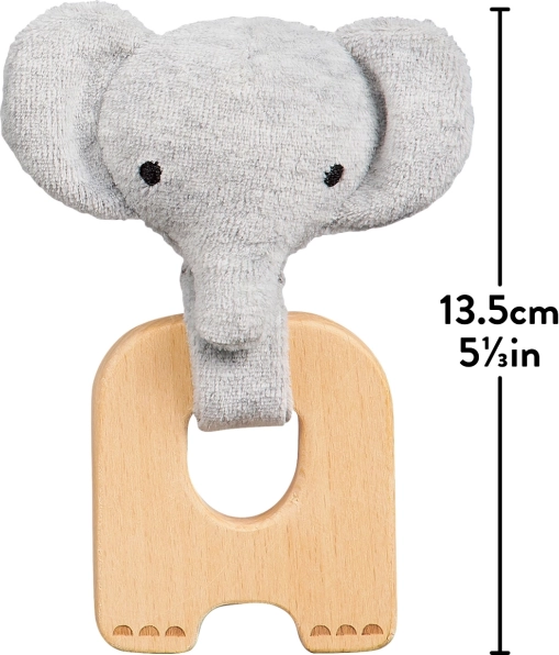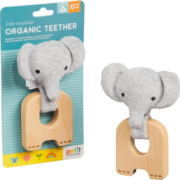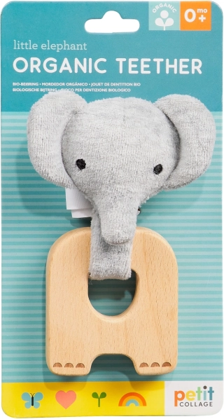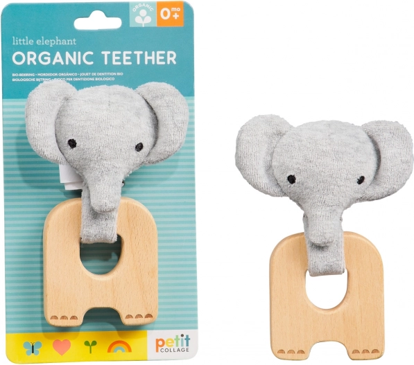 Petit Collage Grizalo slon ponuja otrokom varen in ekološki način, kako se zabavati in umiriti. Kombinira organski bombaž in FSC certificiran les za zagotavljanje varnosti in udobja.
