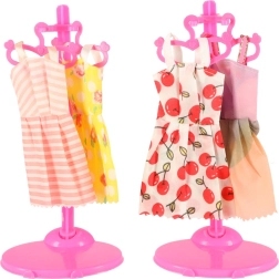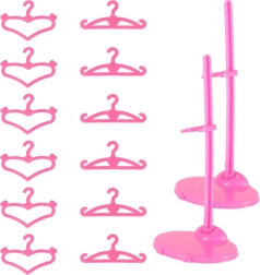 Sestavni del so obešalniki in stojala, ki omogočajo enostavno urejanje oblačil za punčke na enem mestu.