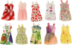 Set vsebuje 10 kril za punčke z različnimi vzorci, kot so črte, cvetlični in abstraktni motivi.