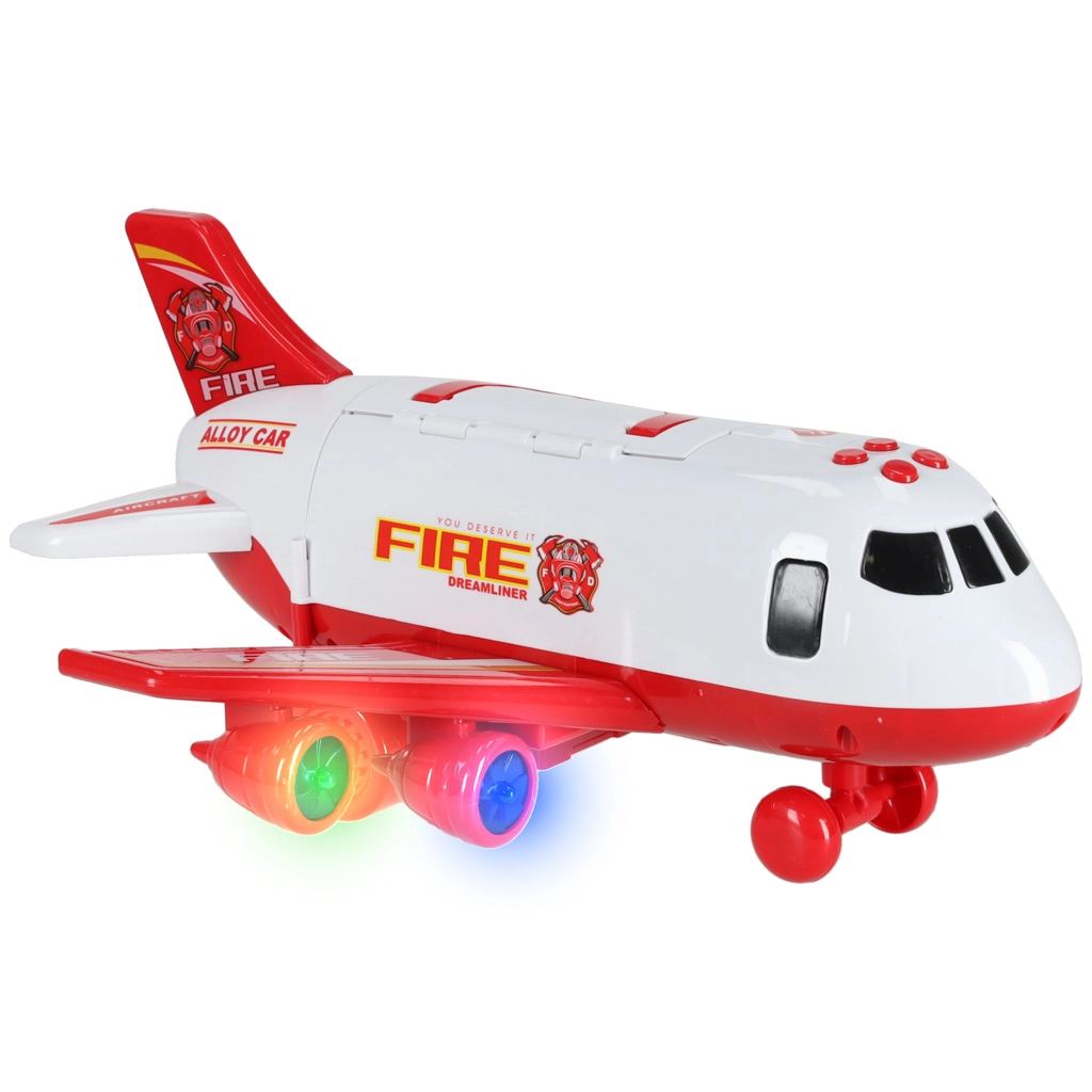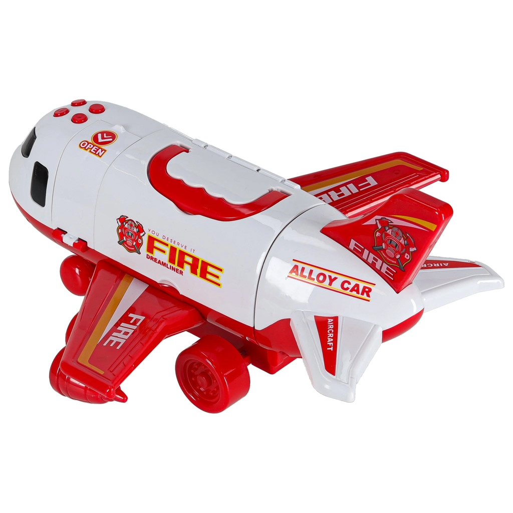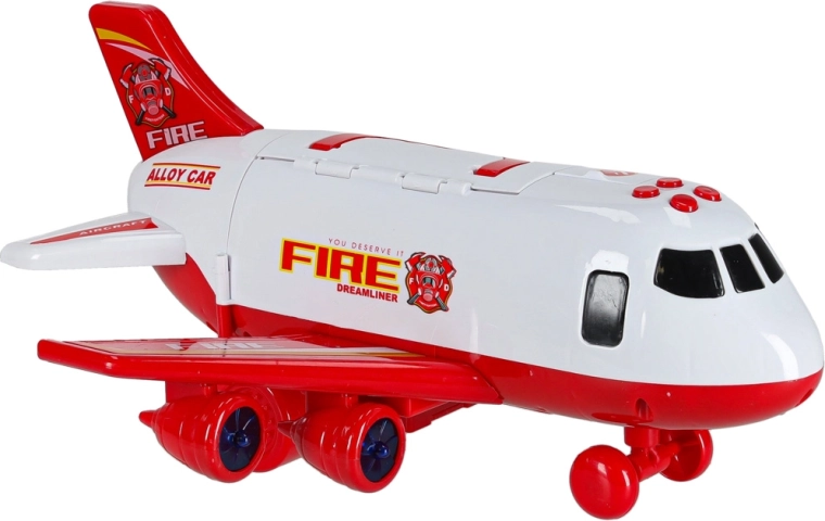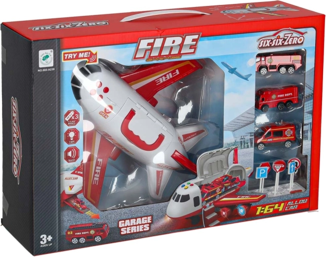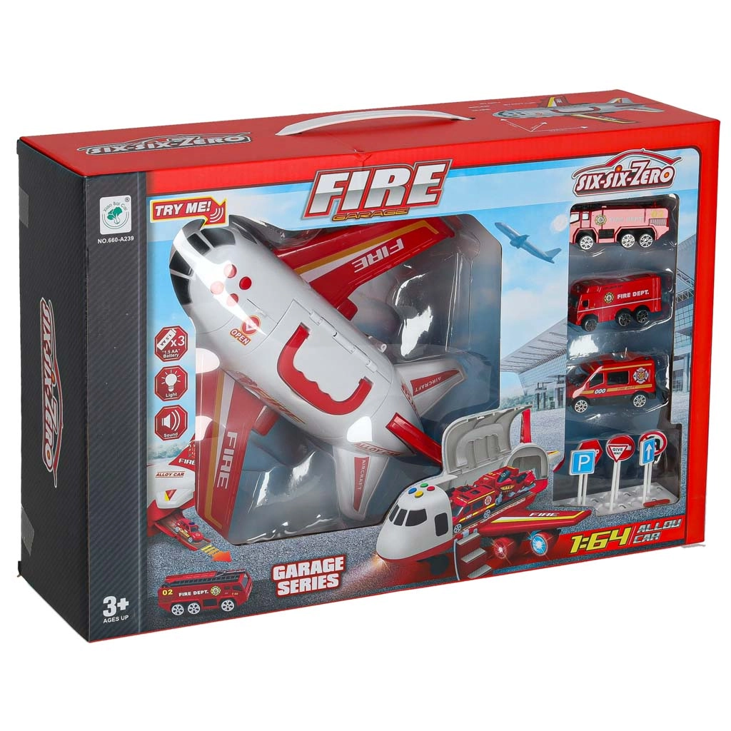 V kompletu so 3 gasilska vozila in set 7 prometnih znakov. Vse se prilega v notranjost letala, zato je vse pospravljeno in pripravljeno na pot.