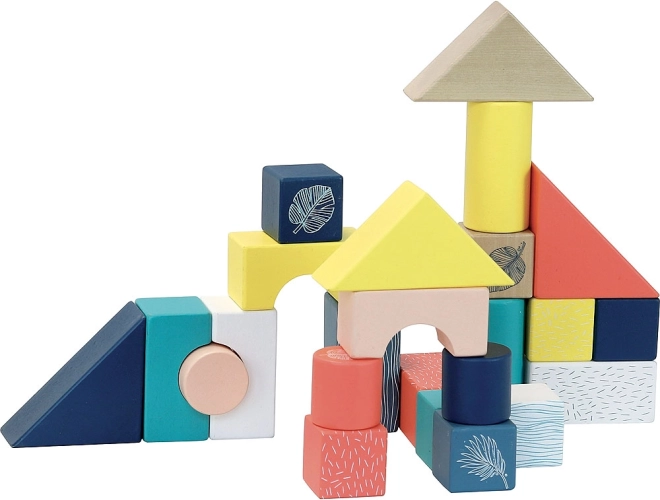 Vsebuje 24 kock različnih oblik in barv, ki spodbujajo ustvarjalnost in prostorsko razmišljanje.