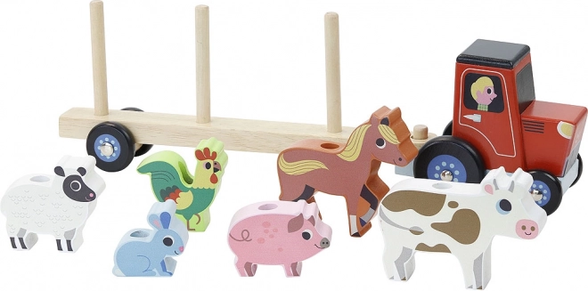 Vilac leseni traktor s prikolico in živalicami za natikanje