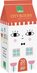 Lesene kocke Mestna hiša znamke Vilac, oblikovane od priznane oblikovalke Suzy Ultman, so idealne za otroke od 2 let naprej. Vsebujejo 20 lepo ilustriranih kock, ki otrokom omogočajo ustvariti majhno mesto, polno barv in oblik.