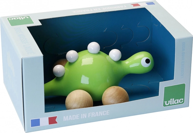 Uživajte v zabavi z lesenim dinozavrom na kolescih znamke Vilac. Ta prikupni dinozaver je pobarvan v zeleno in okrašen z belimi izrastki na hrbtu. Zahvaljujoč lesenim kolescem lahko vaš mali raziskovalec z dinozavrom zlahka vozi po hiši ali na prostem.