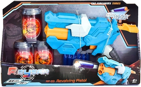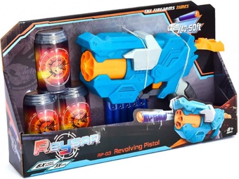 Del paketa so tri plastične pločevinke, ki služijo kot tarče za vadbo merjenja, ter šest mehkih penastih nabojev za varno igranje. Popolna izbira za domača tekmovanja v natančnosti in akcijske dvoboje s soigralci.