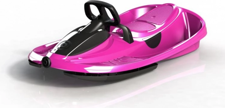 Sani z volanom STRATOS – edinstvena in masivna konstrukcija; zavijanje z diferencialom poveča hitrost v ovinkih, ker se lahko vsaka smučka zavrti pod različnim kotom; samodejni navijalni mehanizem vlečne vrvi; dva sedeža; nosilnost 90 kg; masivna zavora z vzmetjo za vračanje v prvotni položaj; brez kovinskih delov, brez skrbi zaradi korozije; varnostna certifikacija za otroke.