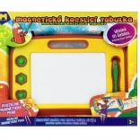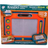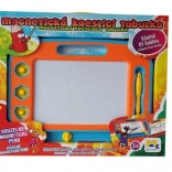 Magnetna risalna tabla je idealna izbira za male umetnike doma in na poti. S čarobnim magnetnim peresom in tremi žigi bodo otroci uživali ure ustvarjanja brez potrebe po papirju in barvicah. Z enim samim premikom brisalne letvice slika izgine in površina je pripravljena za novo mojstrovino.
