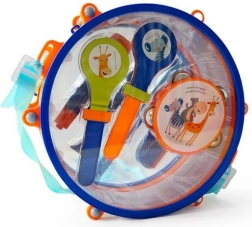 Vključuje boben s palicama, tamburin, marake, flavto in druge ropotulje – vse v živahnih barvah za igrivo učenje.
