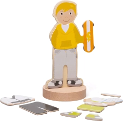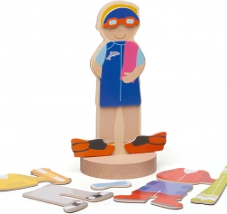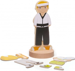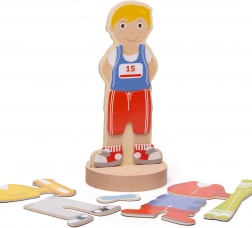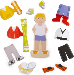 Magnetne oblačilne puzzle prinašajo otrokom zabavo in učenje v enem. Zahvaljujoč sedmim športnim kombinacijam lahko mali ustvarjalci mešajo in usklajujejo oblačila, kreirajo edinstvene outfite ter pripovedujejo zgodbe o svojih junakih. Čvrsta škatla z magnetnim pokrovom drži vse koščke skupaj – idealno za na pot in za otroško sobo.