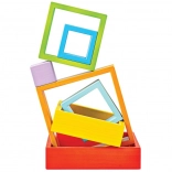 Ta prilagodljiv komplet ponuja neskončno kombinacij – brez navodil, zgolj z domišljijo. Otroci lahko kvadrate vstavljajo po velikosti, gradijo stolpe, ustvarjajo mozaike ter pisane okvirje za svoje stvaritve, po igri pa z njimi okrasijo sobo. Trden les in gladki robovi zagotavljajo prijeten oprijem in dolgo življenjsko dobo igrače.