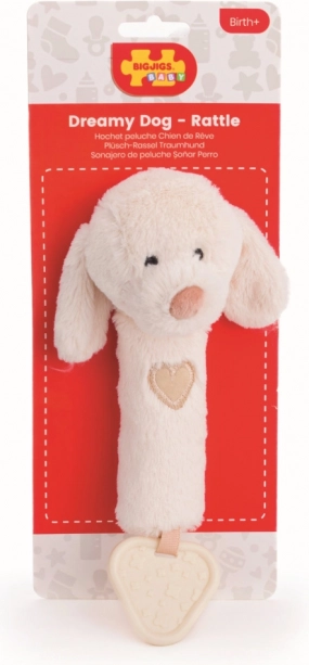 Ljubek kužek znamke Bigjigs Baby združuje ropotuljico, piskalnik in grizalo v eni igrači. Izdelan je iz mehkih, varnih materialov, prijaznih do otroške kože. Zahvaljujoč praktični velikosti za majhne ročice spodbuja razvoj čutov, pomirja razdražene dlesni in izpolnjuje evropske varnostne standarde. Odlično darilo za novorojenčke in dojenčke 0+.
