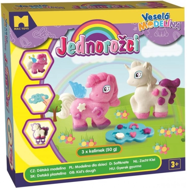 Prebudite domišljijo s kompletom MAC TOYS vesela modelirna masa – samorogi: trije lončki po 50 g, barvni kalupi in orodja za ustvarjanje čarobnih bitij. Modelirna masa je lahko oblikovana in se ne izsušuje, idealna za večkratno igro in razvoj fine motorike.