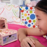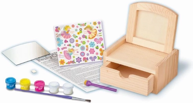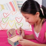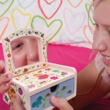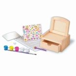 Odkrijte veselje do ustvarjanja s to čudovito kozmetično skrinjico. Ta komplet vam omogoča, da pobarvate in okrasite svojo lastno skrinjico za male zaklade, idealno za ustvarjalne otroke.