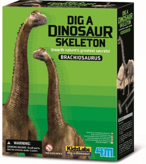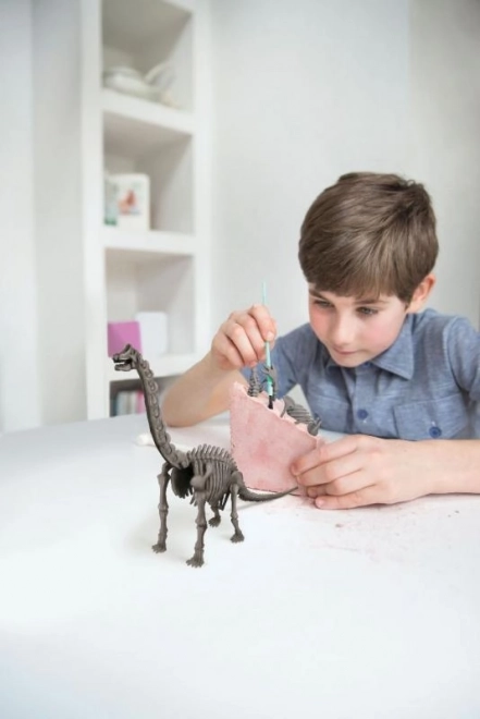 Komplet za izkopavanje in sestavljanje dinozavrovega okostja, ulitega v mavec. Vsebuje potrebna orodja.